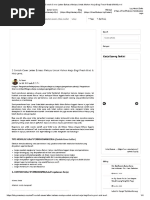 2 Contoh Cover Letter Bahasa Melayu Untuk Mohon Kerja Bagi Fresh Grad Mid Level Pdf